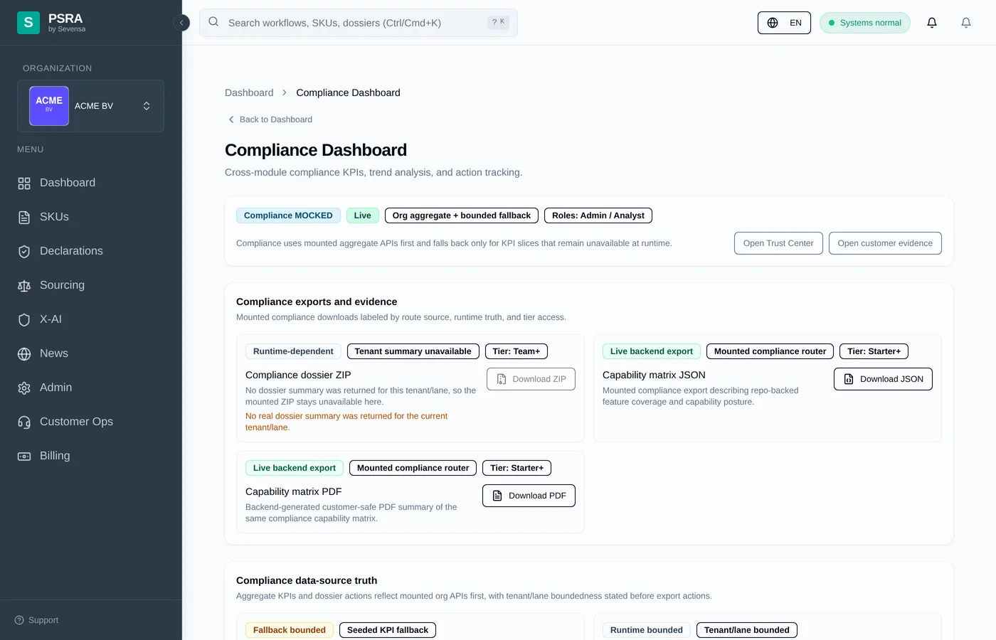 Every decision is traceable to source legislation, every export is audit-ready, and every supplier workflow has a clear owner and deadline.